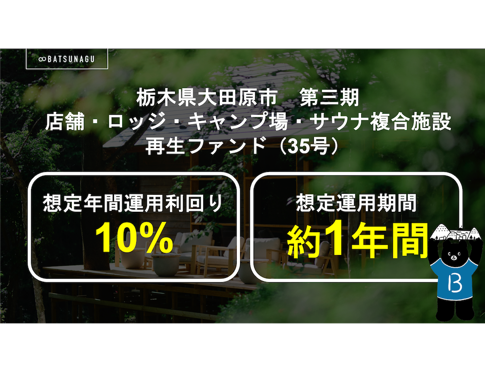 BATSUNAGUでは、これまでに4本の償還実績があります。 実績を元にした事業計画に沿って、安定した運用をすることで、予定通りの利回りと運用期間での償還が完了しました。